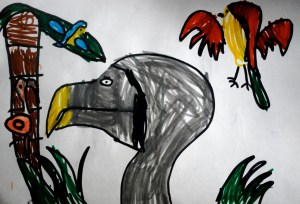 Since abandoning the popular but short-lived blog Do and Road, people often ask me if Jack still draws dodos. Oh yes, he does. He also draws a lot of Star Wars and Greek Myth themed drawings, but Do and Road do still feature quite frequently in the sketch books. Since their last online appearance, Do and Road have had many adventures. This particular drawing was done just before the school year started, testing out the brand new box of markers that had just been purchased as part of the school supplies.
